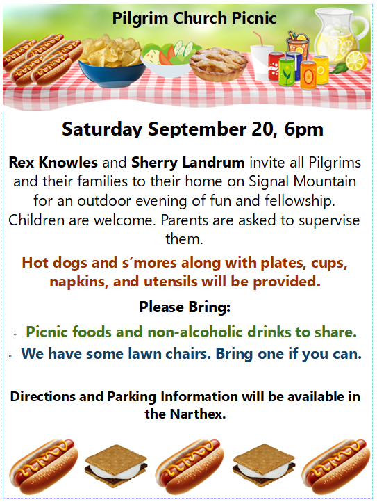 Back to All Events Cookout at Rex and Sherry’s Saturday, September 20, 2025 6:00 PM 8:30 PM Google Calendar ICS